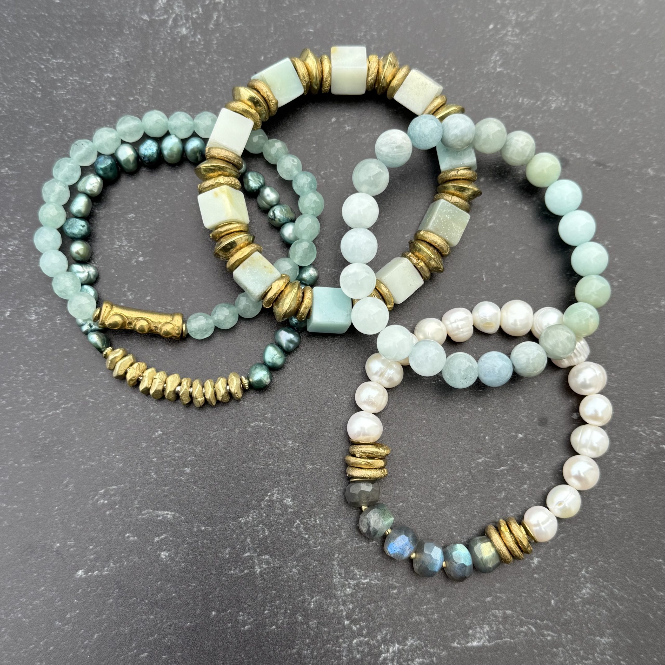 Beads strung on durable stretch elastic. Sized to fit a 7″ wrist.