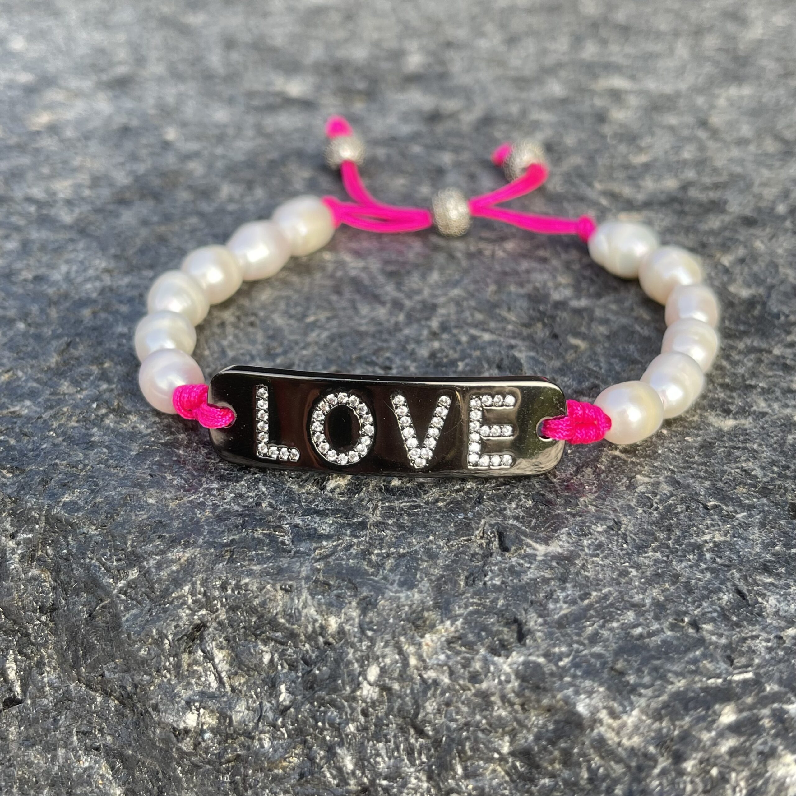 LOVE-ly stacked, or beautiful on its own, a Pearl adjustable slider bracelet to inspire love…starting with yourself!
